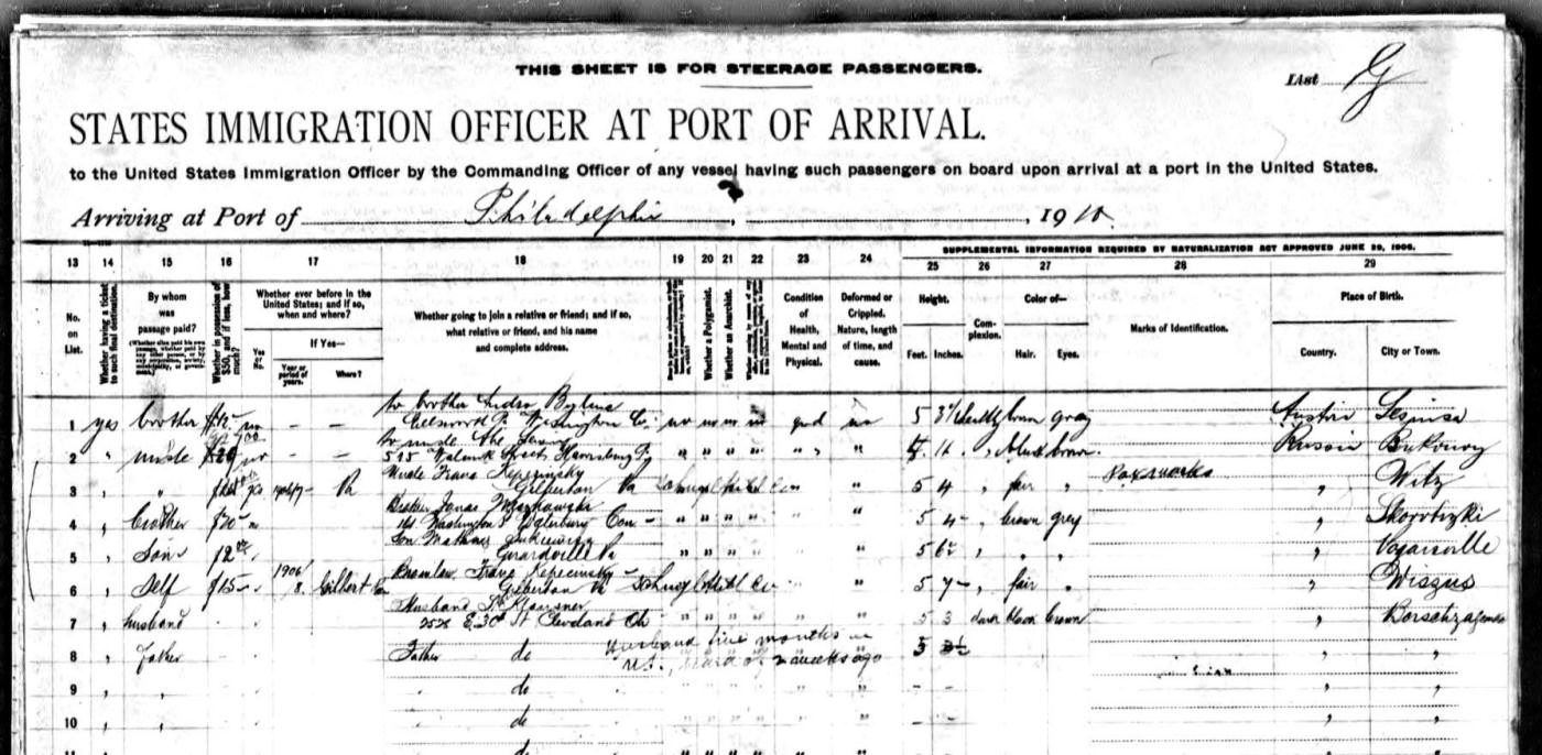 1910 ship's manifest page 2