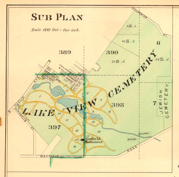 showing Lake View Cemetery and a "Jewish Cemetery"