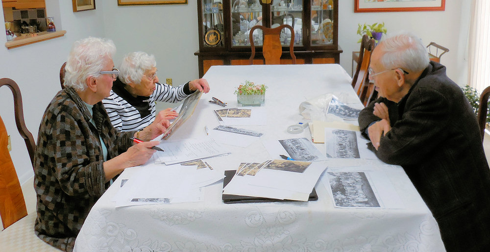 Mrs. Rosenthal was not yet born in 1928. Her parents, the Orkin family, were the first Geneva Jewish farmers. Lil Milder and Sanford Silverman are in the picnic photo. They are two of the twelve Silverman children. Judith Rosenthal had arranged the work session at my request. Lil Milder is holding her mounted, unframed full-size (30 inch) print of the photo. I had come with copies of the left and right of