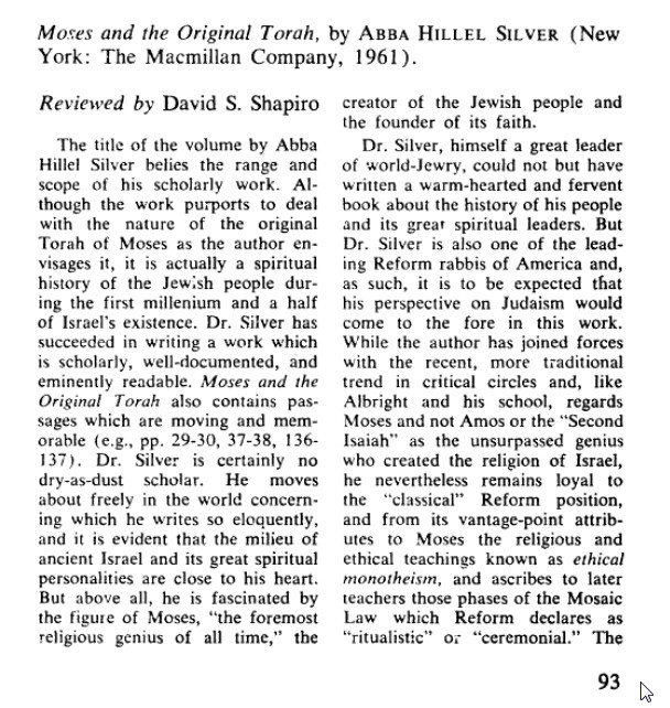 Searches found no mention of this book in Cleveland's Jewish weeklies, and no review in the Plain Dealer.  Fortunately the online archive JSTOR has an eight page review published in the Fall of 1963 by another rabbi-scholar, David S. Shapiro, of Milwaukee's Orthodox Anshe Sfard, in Tradition: A Journal of Orthodox Jewish Thought. We show the first page below.