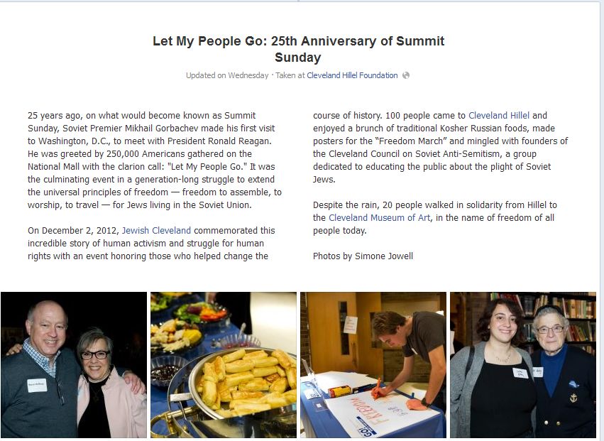 We document this commemoration of the 25th anniversary of Summit Sunday held at Cleveland Hillel on the CWRU campus by making available six objects. (Note - links to other websites open in a new browser tab or window.)