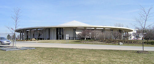 Brith Emeth's distinctive "temple in the round" was designed by Edward Durrell Stone, one of America's leading architects, and completed in 1967. Stone's other projects include Cleveland's Jewish Community Federation (1965) (more on this website) and, best known, the Kennedy Center in Washington (1971). The building is now the Lillian and Betty Ratner School and is also used by Kol HaLev: Cleveland's Reconstructionist communityCaption and photo (taken March 2010) by Arnold Berger