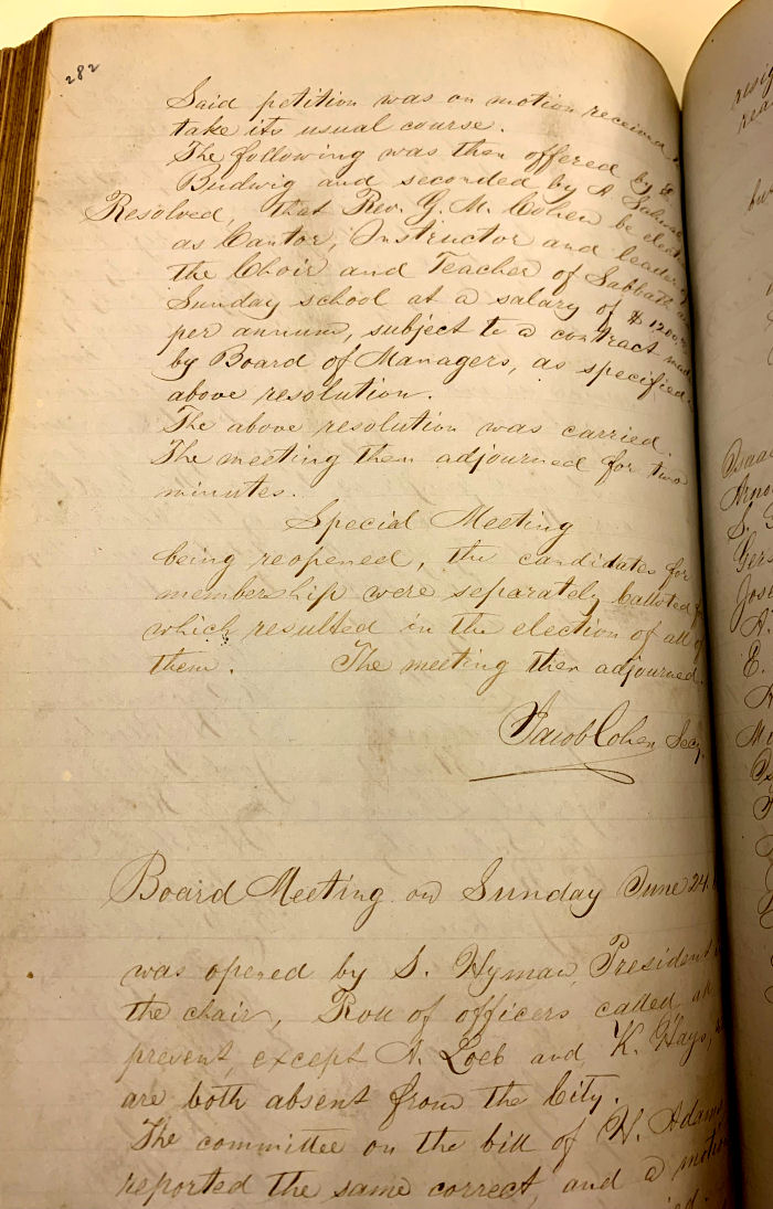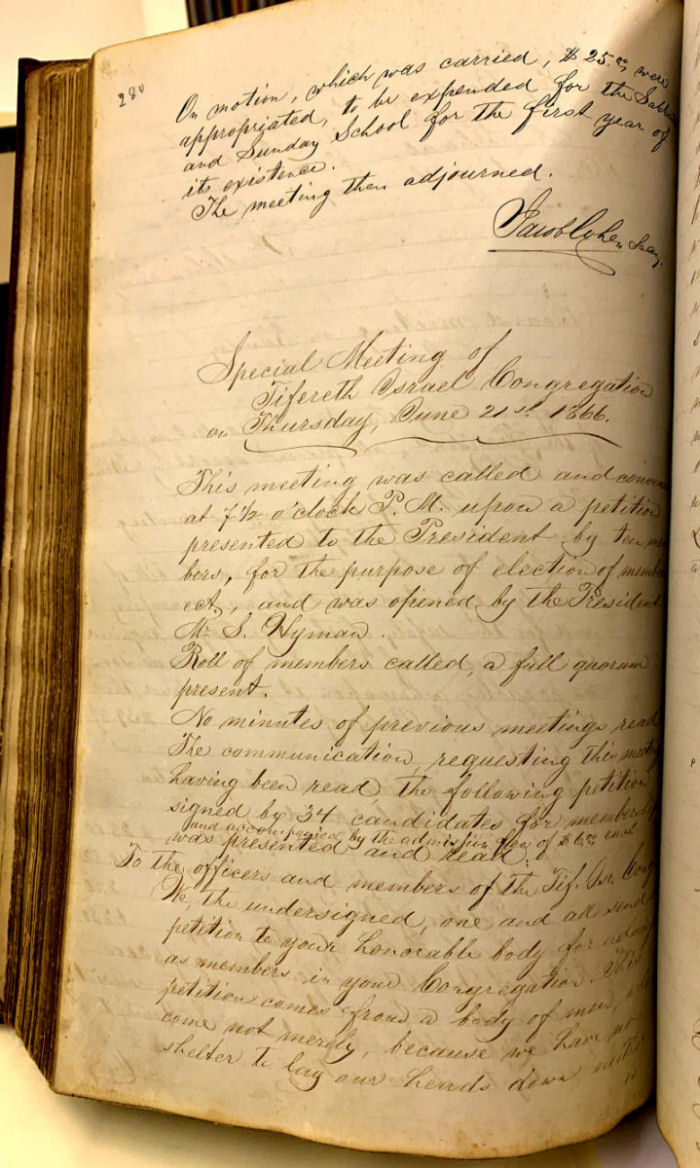 congregation meeting on Thursday evening, June 21, 1866 include the text of the petition, the names of the 34 petitioners and the motion to
